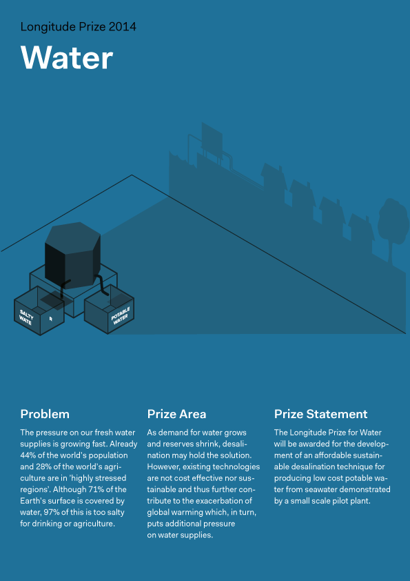 As lead research partner our role was to design the structure of the six challenge prize candidates for the main Longitude Prize 2014. The topics for these prizes were Antibiotics, Dementia, Flight, Food, Paralysis, and Water.